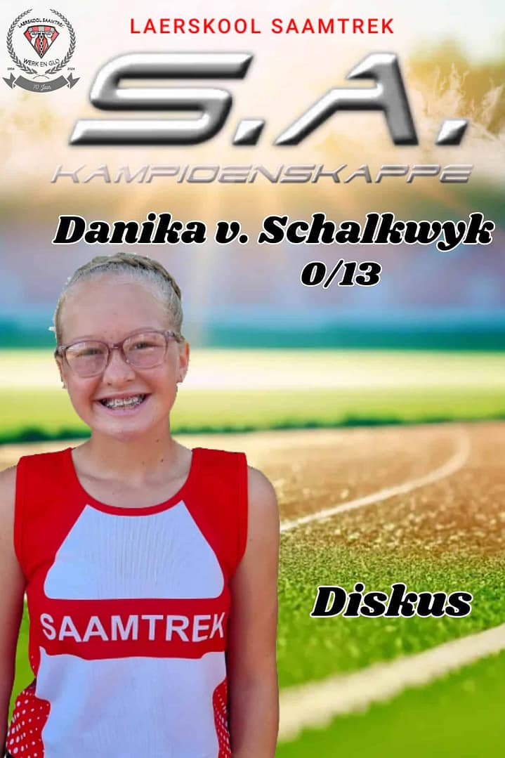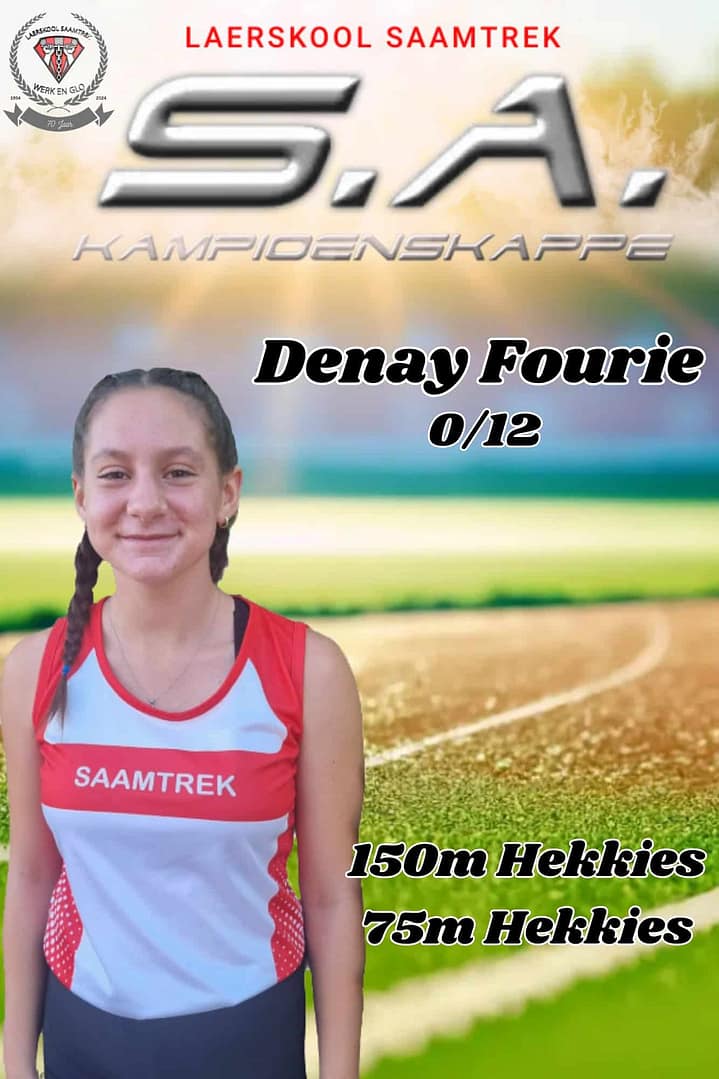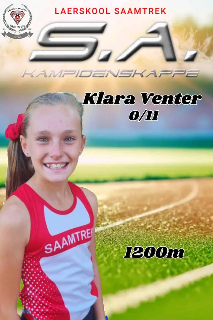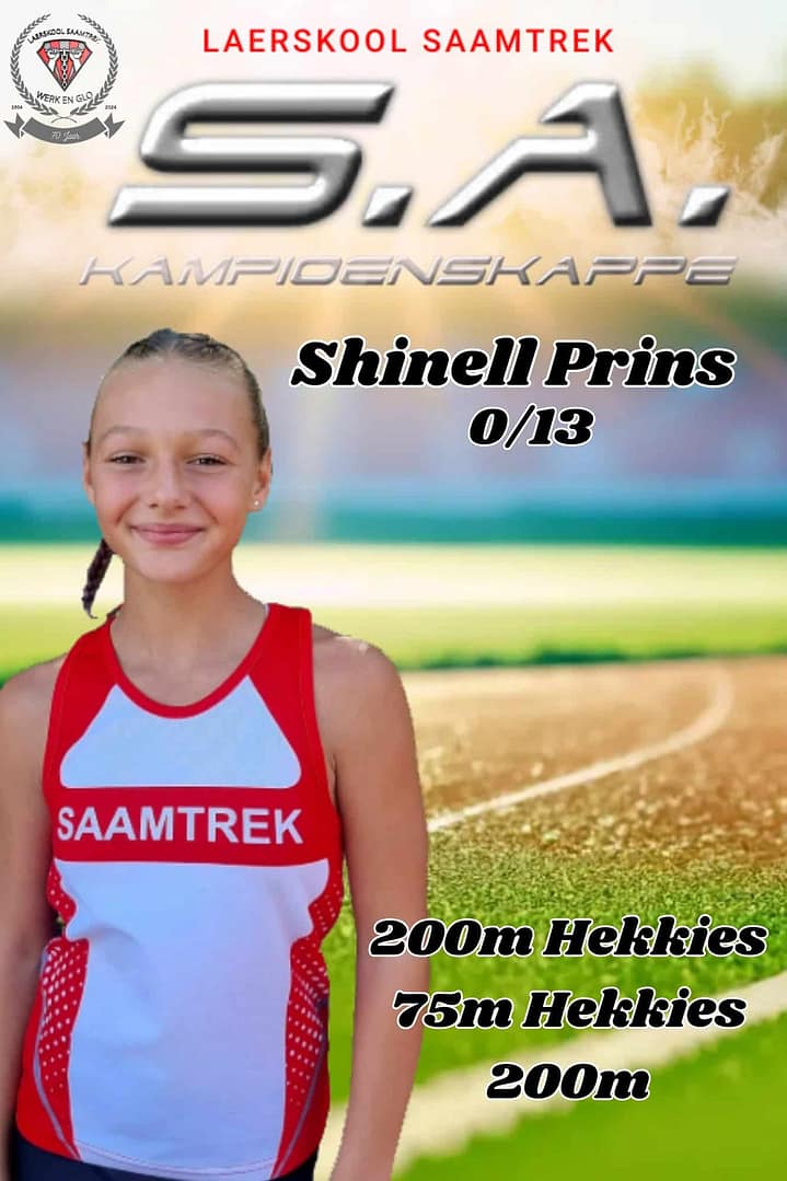 Wat ‘n groot voorreg om 17 Laerskool Saamtrek-atlete by die S.A. Kampioenskappe te sien! Hulle neem vandag en more in 24 items aan die S.A. Kampioenskappe te Polokwane deel. Laerskool Saamtrek is trots op elke atleet en ons hou styf duim vas!
