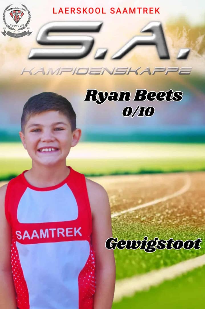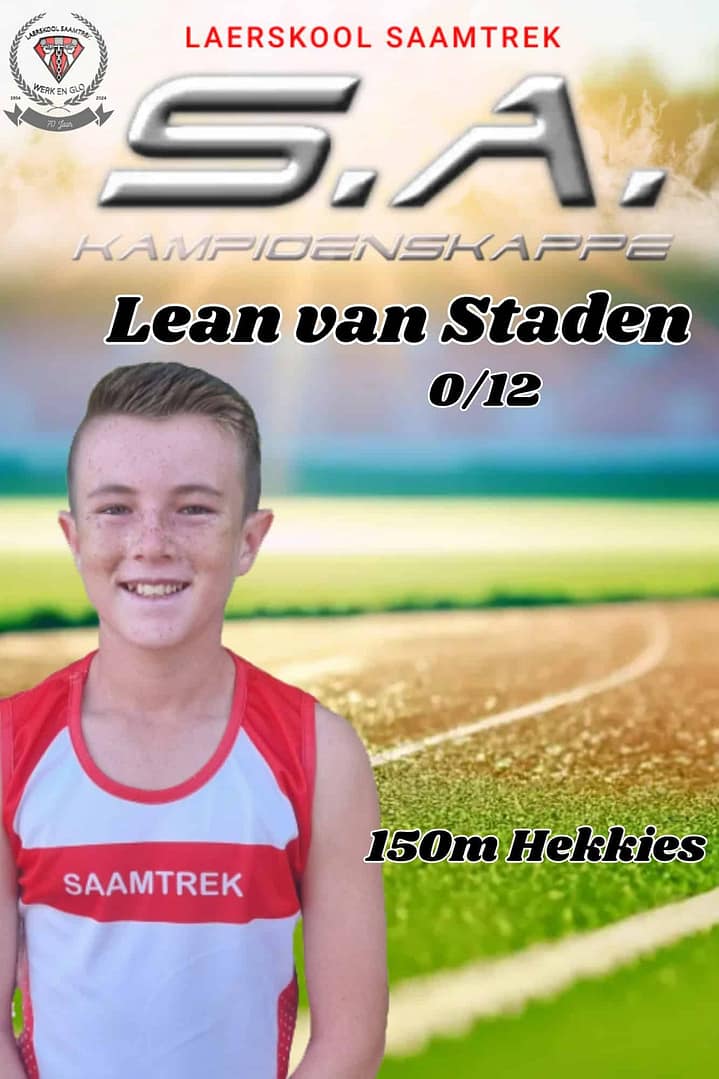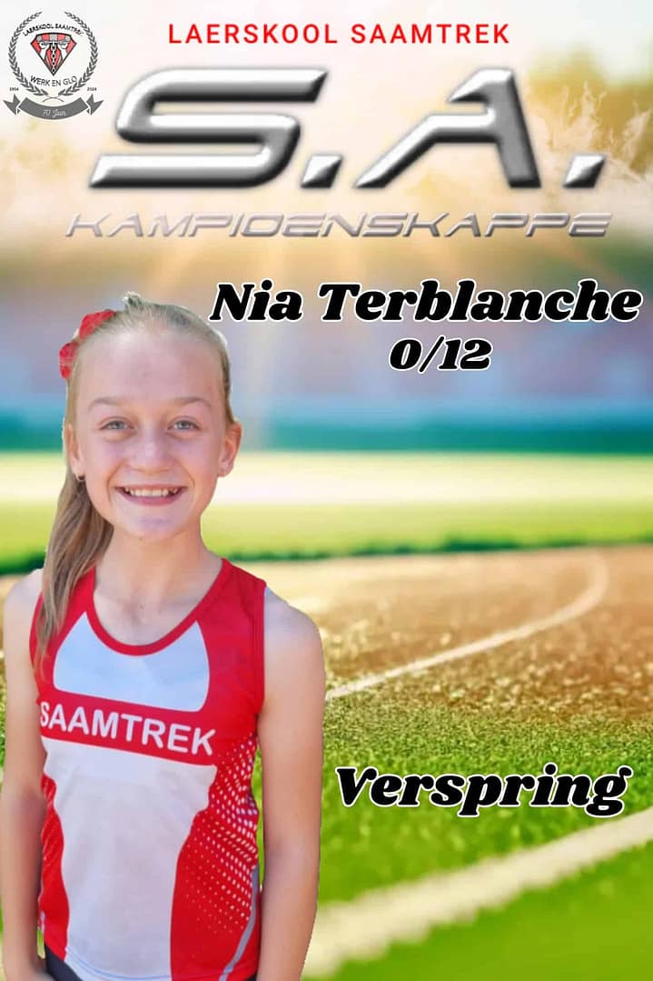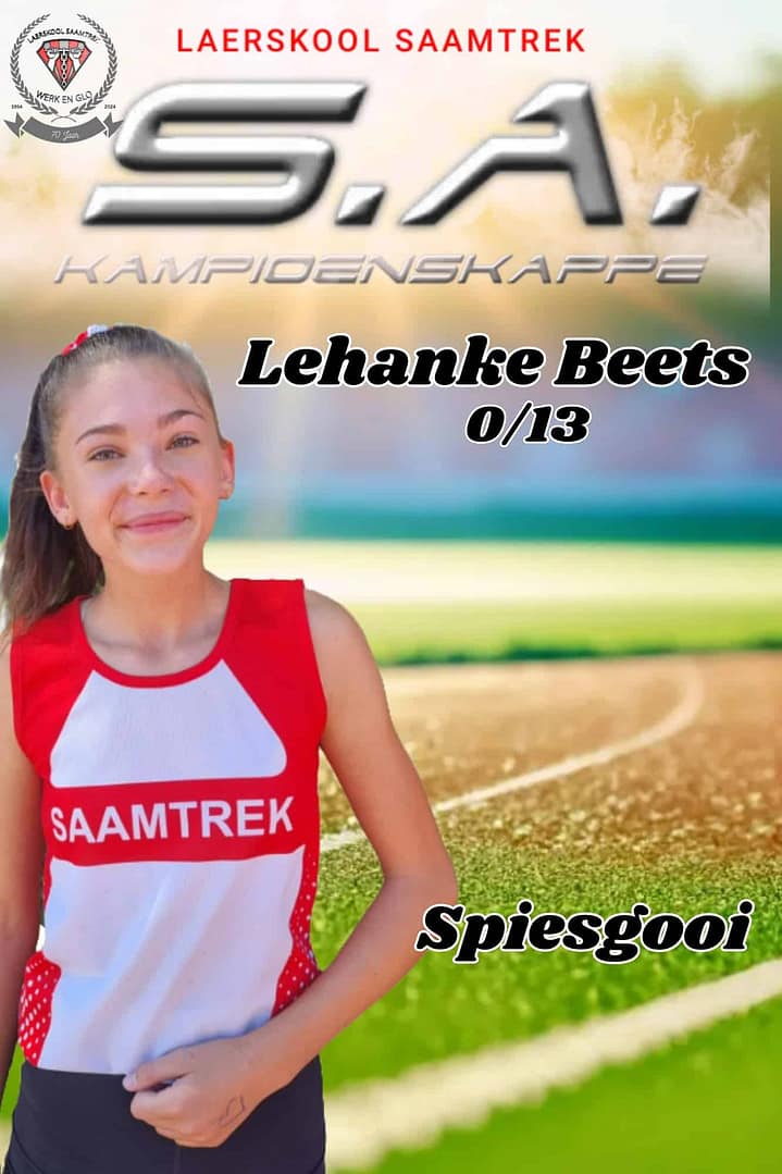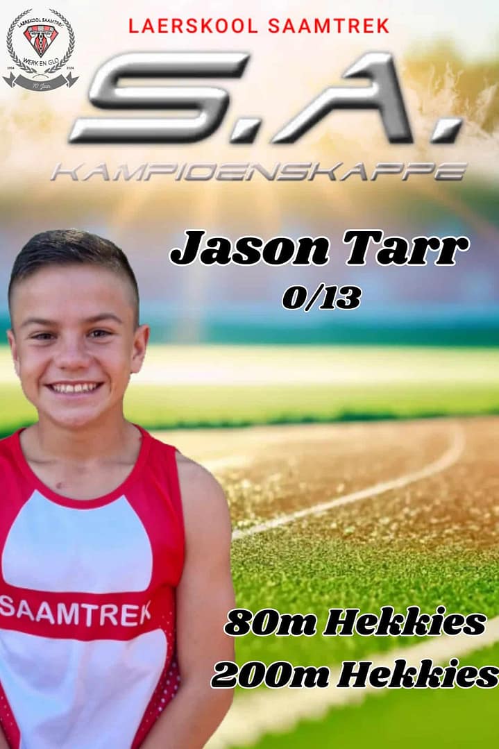 Wat ‘n groot voorreg om 17 Laerskool Saamtrek-atlete by die S.A. Kampioenskappe te sien! Hulle neem vandag en more in 24 items aan die S.A. Kampioenskappe te Polokwane deel. Laerskool Saamtrek is trots op elke atleet en ons hou styf duim vas!