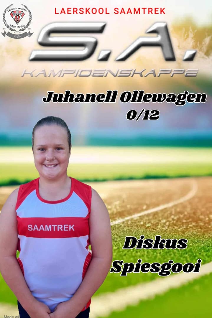 Wat ‘n groot voorreg om 17 Laerskool Saamtrek-atlete by die S.A. Kampioenskappe te sien