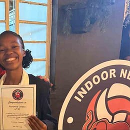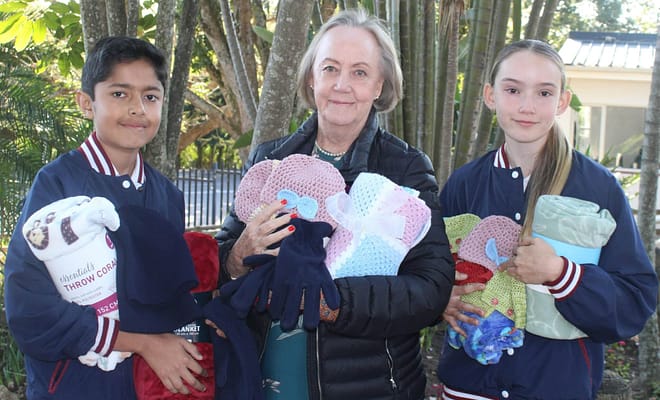 Pictured with Astrid are grade 6 learners Jorja Hunsley and Tyron Southey.
