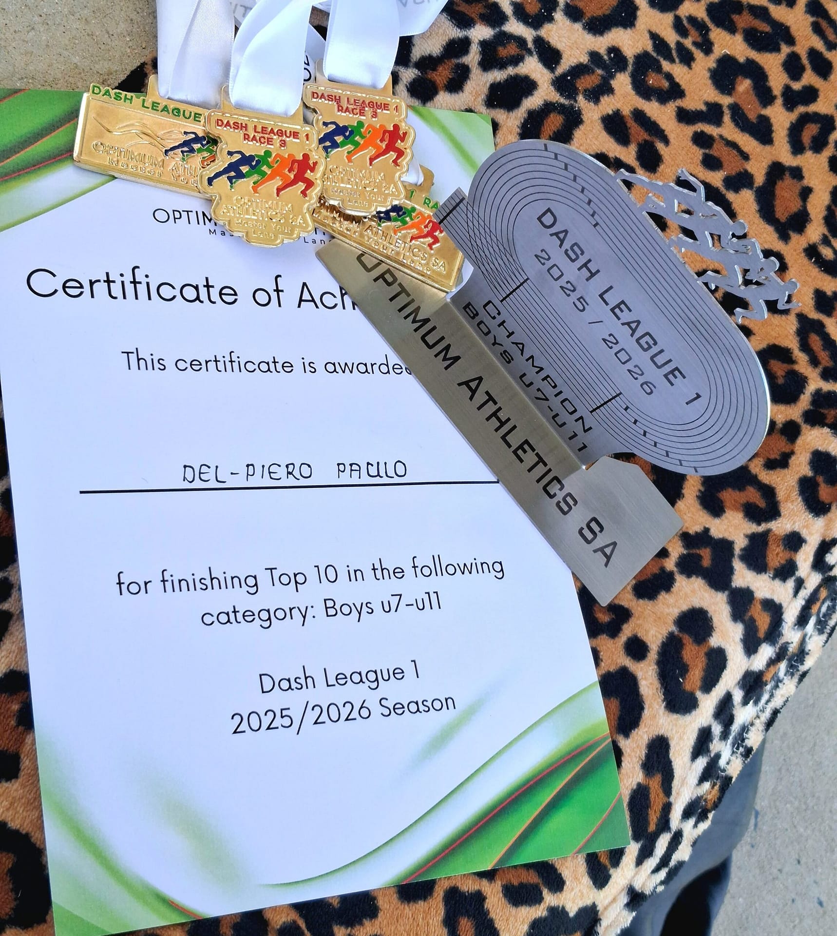 The series began with Race 1 in November 2025, where Del-Piero immediately made his mark. Competing in the Under-9 category against older athletes, he set new record times in both the 60m and 80m during the semi-finals and finals, earning a gold medal in one event and a silver in the other.