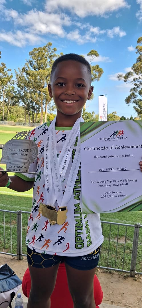 As a young athlete representing both his West Coast roots and his current Overberg base, Del-Piero Paulo is fast establishing himself as a rising name in South African youth athletics.