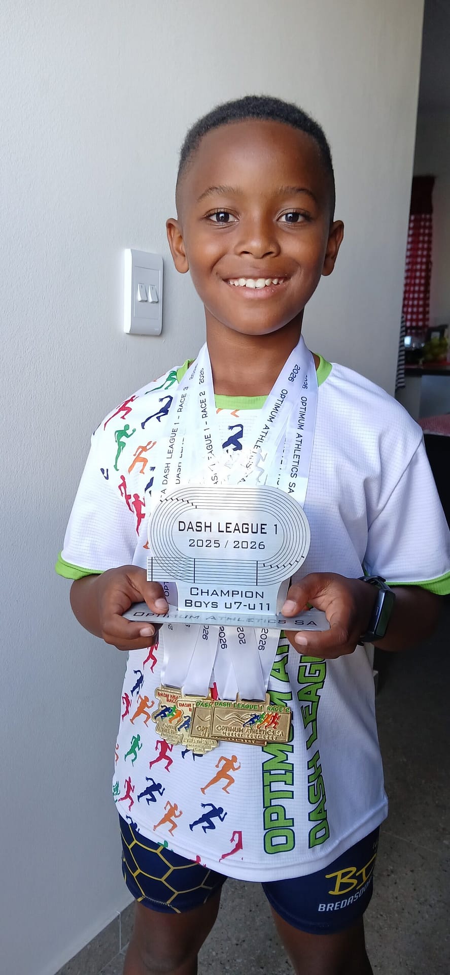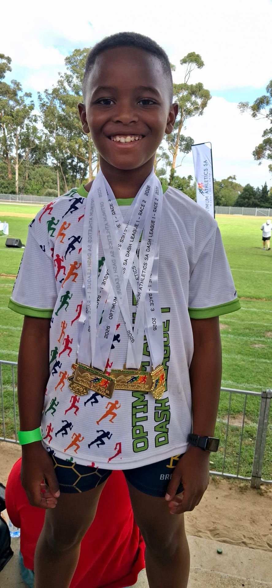 Th Optimum Athletics SA Dash League 1 comprised three events — Race 1, Race 2 and Race 3 — featuring a unique format that combined athletes aged 7 to 11 in a single competitive category. While Under-7 athletes are introduced to the sport using whistle starts, competitors from Under-9 level and above race under official starting pistol conditions, placing Del-Piero in a structured and highly competitive environment.